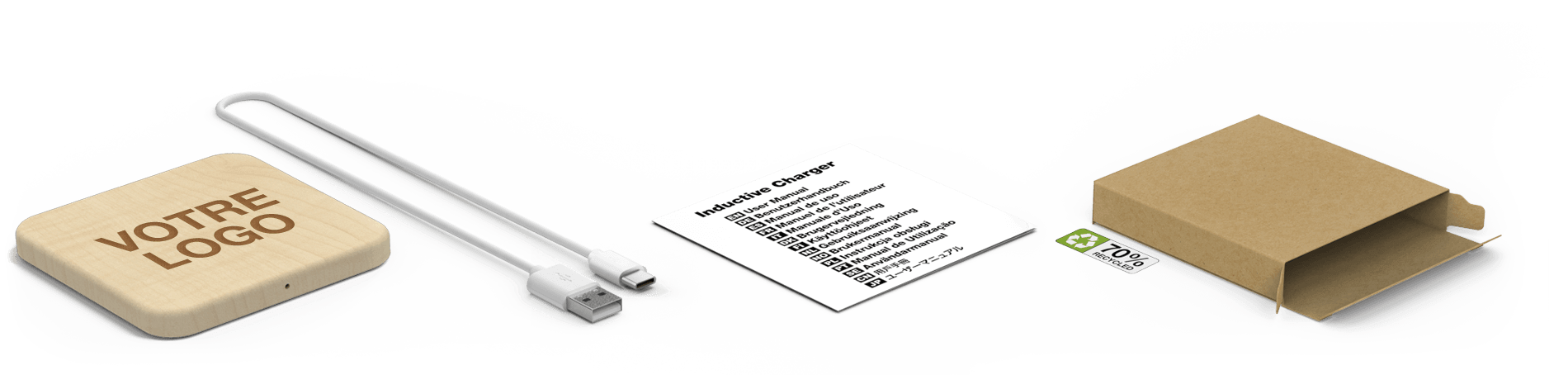 Notre chargeur de téléphone sans fil Forest est un excellent cadeau d'entreprise, un prix pour un salon professionnel ou un outil de marketing interne, en particulier pour refléter les valeurs de durabilité de votre marque. Grâce à notre service professionnel de sérigraphie, nous pouvons reproduire votre logo ou votre slogan de manière vibrante et de haute qualité en 4 couleurs maximum, en veillant à ce que votre design ressorte magnifiquement sur la surface en bois d'érable.