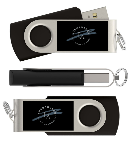 La Twister est une clé USB sans capuchon dotée d'une coque métallique unique pivotant à 360° qui protège le connecteur et permet d'apposer une marque sur les deux faces. Elle est livrée avec un porte-clés qui permet de l'attacher facilement à des clés ou à des cordons.
