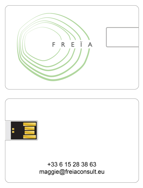 Avec ses 2.2mm d’épaisseur, la carte USB Wafer est l'une des plus fines cartes USB dans le monde: idéale pour être glissée dans votre poche, portefeuille ou organiseur. Sa grande surface de marquage peut être imprimée sur les deux faces tout en couleur pour ainsi mettre en valeur vos plus chics designs. La coque extérieure est fabriquée à partir de plastique recyclé certifié GRS. Découvrez notre qui dispose d'un connecteur USB standard et d'un connecteur USB-C.