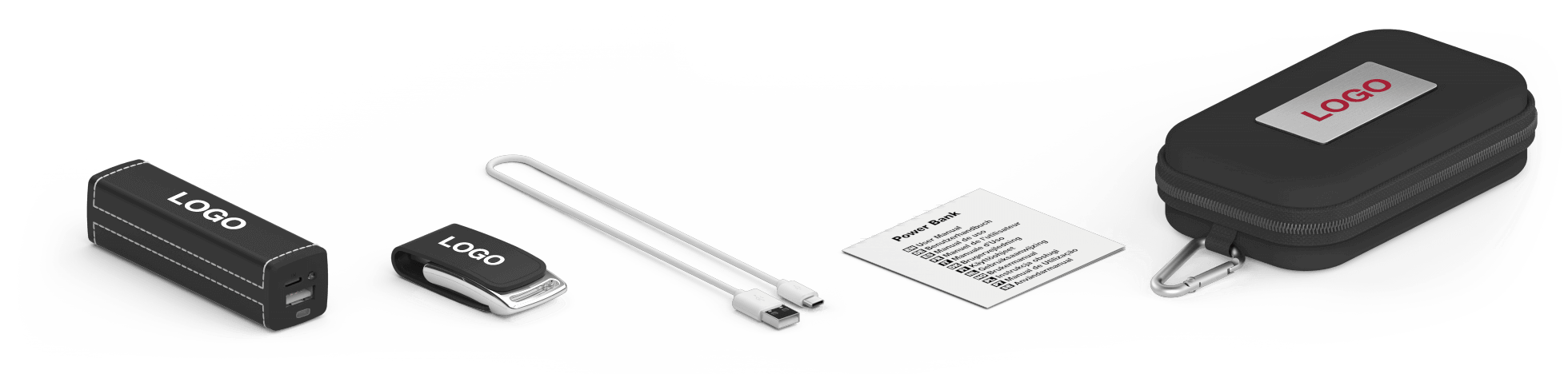 Combinez 2 produits dans un coffret cadeaux de voyage pratique: Executive Clé USB, Lux Power Bank. Les produits soigneusement rangés à l'intérieur peuvent être marqués de votre logo, de votre site internet, de votre slogan et plus. Le dessus du coffret Cadeau peut aussi être gravé au laser ou Sérigraphié jusqu'à 4 couleurs. Vous pouvez combiner les couleurs des different produits à souhait.