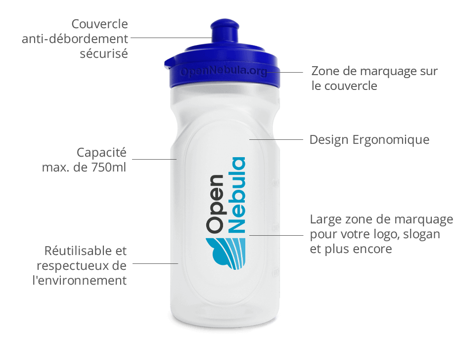 La gravure permet de marquer de manière totalement indélébile vos noms/prénoms. Ce service est idéal pour les clubs sportifs et les écoles, car il permet d'éviter toute confusion potentielle entre les bouteilles d'eau ou les tasses pendant les entraînements ou les compétitions. Chaque nom accompagnera votre logo et votre slogan sur le produit.