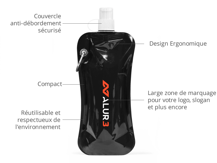 La gourde souple Marathon est un produit promotionnel élégant et compact idéal pour vos prochains événements ou conférences. Le Marathon peut contenir 400 ml de liquide froid. Il peut être personnalisé avec votre logo, votre slogan et plus encore. Le tout avec des détails ultra-précis.