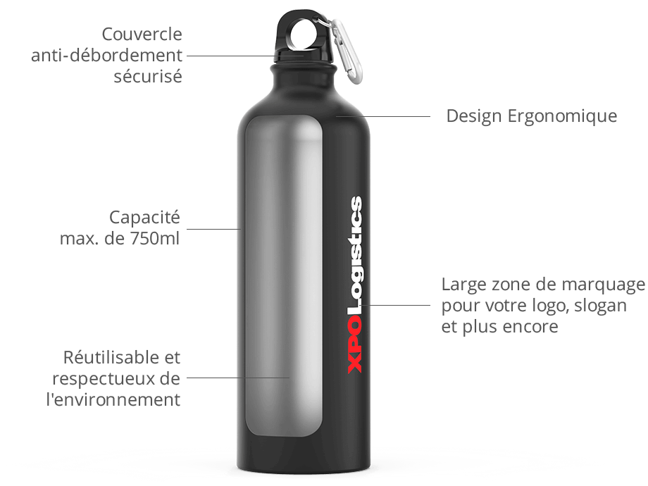 Nous pouvons marquer vos gourdes et tasses d'un visuel exceptionnel qui recouvre l'ensemble du corps de la gourde. Le résultat final est un produit extrêmement attrayant et percutant qui sera utilisé tous les jours et qui vous permettra de faire connaître votre marque de manière fantastique.