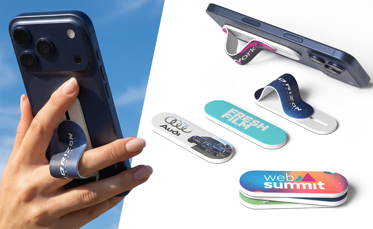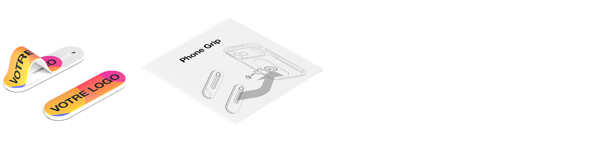 Le support de smartphone Digit est un objet promotionnel ludique et pratique, conçu pour être utilisé au quotidien. Sa surface de marquage dédiée permet une impression photo haute définition de votre logo ou de vos visuels. L'installation est simple : retirez le film protecteur de la face adhésive et pressez le Digit contre votre téléphone pendant 30 secondes. Il ne vous reste plus qu'à faire glisser le support pour l'adapter à votre prise de main.