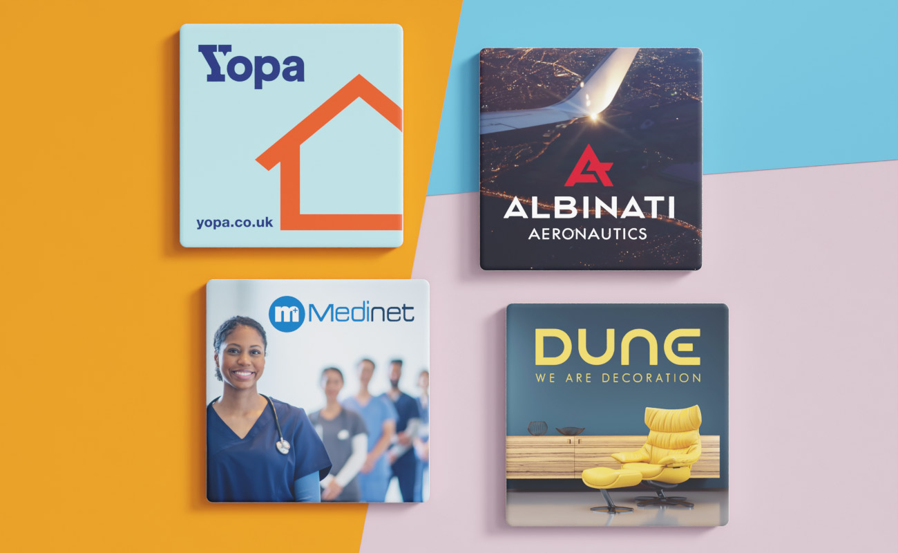 Le dessous-de-verre Form offre une finition haut de gamme avec sa surface en céramique lisse et sa base antidérapante en liège. Conçu avec une large zone de marquage, il est idéal pour reproduire votre logo, vos images ou vos créations graphiques avec un niveau de détail exceptionnel grâce à notre méthode d'impression photo. C’est un article très prisé, parfait pour un usage quotidien. Contactez-nous pour découvrir nos tarifs actuels, nos options de livraison rapide et tous les détails de personnalisation.