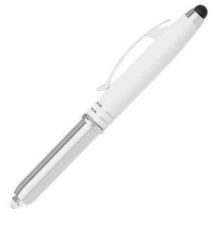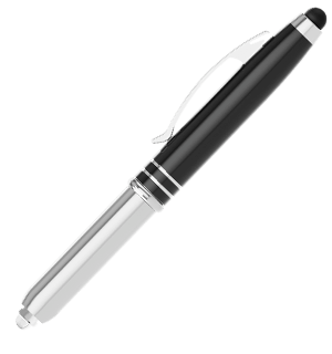 Le stylo Radiance allie forme et fonctionnalité. Il est doté d'un stylet pratique et d'une lampe de poche ! Le corps extérieur du stylo est prêt à être photo-imprimé ou gravé avec votre logo dans les moindres détails. Le stylo lui-même se dévoile en séparant les deux corps. La bordure argentée et le clip lui confèrent également un aspect professionnel - ce qui en fait un produit promotionnel extrêmement populaire.